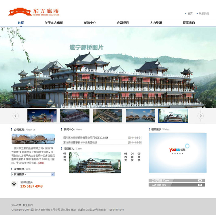 四川東方廊橋投資有限公司(簡(jiǎn)稱“東方廊橋”)可追溯至上世紀(jì)九十年代,公司創(chuàng)始人方云平先生首創(chuàng)設(shè)計(jì)的多功能交通景觀廊橋(簡(jiǎn)稱“新廊橋”)98年設(shè)計(jì)完成,于2000年建設(shè)完成西充“好吃橋”多功能廊橋。西充好吃橋廊橋是全國(guó)多功能廊橋的首次創(chuàng)新,且獲得中央國(guó)務(wù)院總理——朱镕基的親自批示。獲得香港建筑創(chuàng)新 ——金獎(jiǎng)。“東方廊橋”位于我國(guó)著名高等學(xué)府四川省西南交通大學(xué)校內(nèi),環(huán)境優(yōu)美,人才薈萃,有豐富的技術(shù)儲(chǔ)備,多學(xué)科多專業(yè)的工程技術(shù)人員,西南交大36名教授及高工和公司組成高效的管理團(tuán)隊(duì),長(zhǎng)期合作。雄厚的技術(shù)支撐為廊橋市場(chǎng)的建設(shè)奠定基礎(chǔ)。公司董事長(zhǎng)方運(yùn)平 先生多年來,潛心于新廊橋的開發(fā)研究,已獲得國(guó)家知識(shí)產(chǎn)權(quán)局頒發(fā)的“多功能廊橋—發(fā)明專利”,“環(huán)保發(fā)明”十多項(xiàng)專利證書等,并獲得中央文化部的表彰。經(jīng)香港專利事務(wù)所評(píng)估,無形價(jià)值數(shù)十億元。